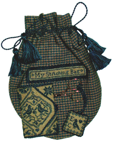 (folded here), scissors weight, and stitching bag with