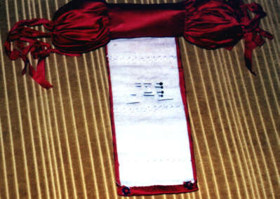 Here is the antique sewing case with attached drawstring bags that was my inspiration for the Rose Garden Sewing Case...